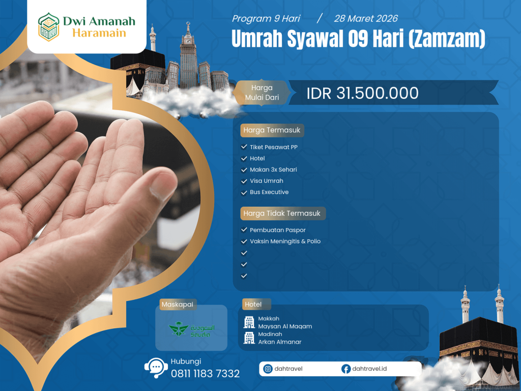 - Penetapan dan Perubahan tanggal keberangkatan sepenuhnya kewenangan PT. Dwi Amanah Haramain kecuali untuk keberangkatan umrah by request.