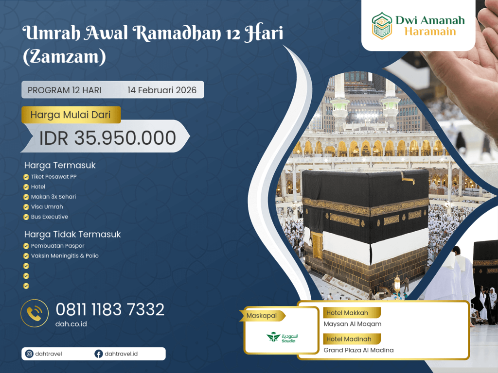- Penetapan dan Perubahan tanggal keberangkatan sepenuhnya kewenangan PT. Dwi Amanah Haramain kecuali untuk keberangkatan umrah by request.